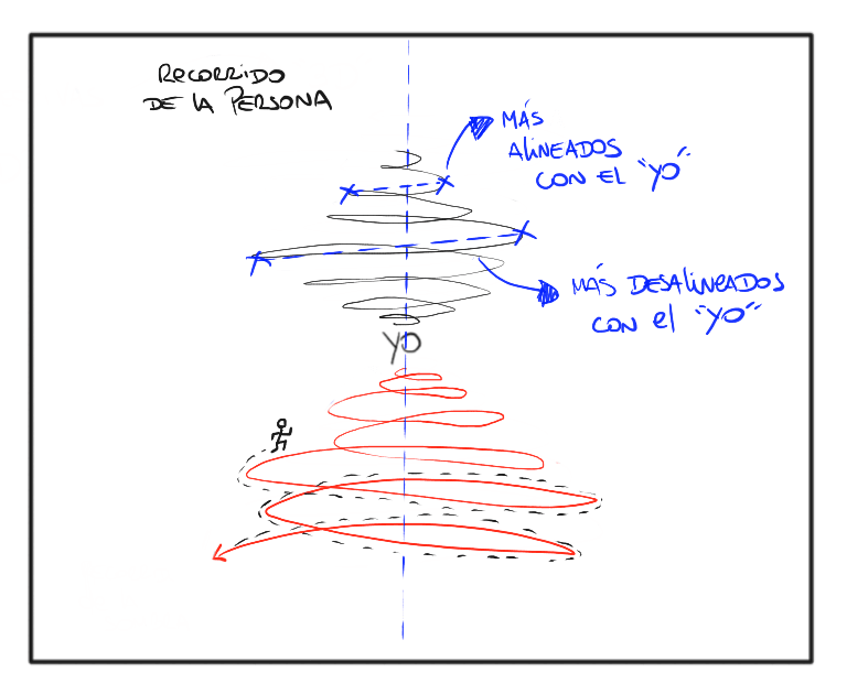 Como vemos, ese avance no es un simple camino en 2 dimensiones. Realmente es una espiral que se expande hacia afuera y hacia el exterior en la medida que no tengamos una coherencia entre nuestra identidad y cómo realmente nos comportamos.