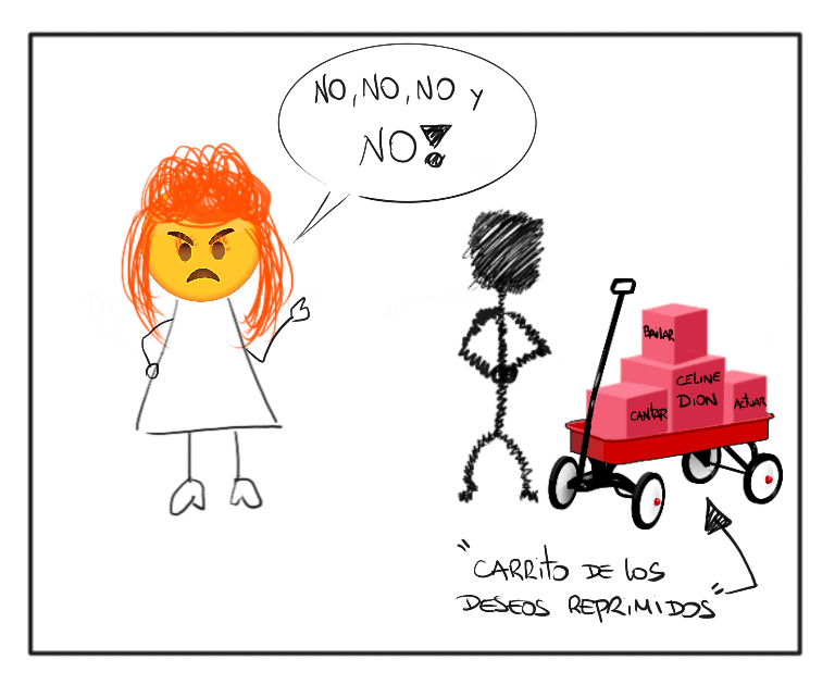 La Sombra por su parte, y como podemos ver en la imagen anterior, es esa parte nuestra fanática de Celine Dion (o del ícono musical de tu época con el que te sientas más identificado) y que no se anima a decirlo. Por lo tanto lo reprimimos y lo escondemos en nuestra sombra. Es por esto que La Sombra incluirá todo lo que queremos ocultar y rechazamos de nosotros. Desde los deseos y sentimientos que por distintas razones creemos que serían desaprobados por la Tía Crianza hasta los talentos que nunca pudimos desarrollar porque la Tía no nos daba el visto bueno.